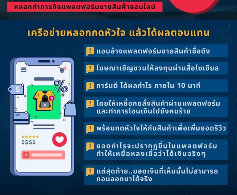 หลอกให้เหยื่อกดโอนเงินสั่งซื้อสินค้าพร้อมกดหัวใจ อ้างว่าเป็นการเพิ่มยอดรีวิว