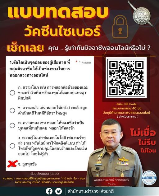 เชิญชวนทำแบบทดสอบวัคซีนไซเบอร์ สำหรับประชาชน 40 ข้อ