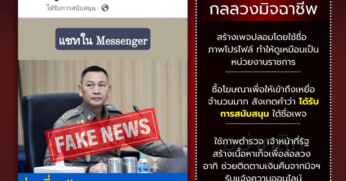 ใช้ภาพตำรวจ เจ้าหน้าที่รัฐสร้างเนื้อหาเท็จเพื่อล่อลวง อาทิ ช่วยติดตามเงินคืนจากมิจฯรับแจ้งความออนไลน์