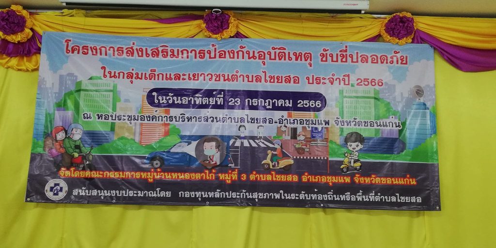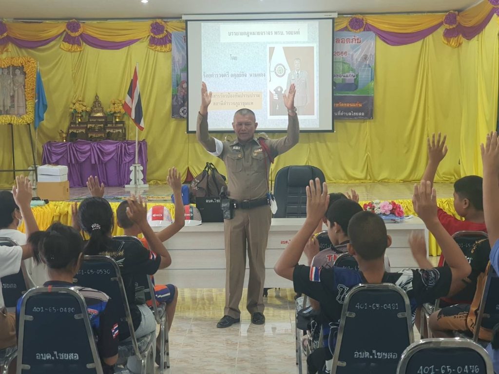 วิทยากรอบรมโครงการส่งเสริมการป้องกันอุบัติเหตุ ขับขี่ปลอดภัยในกลุ่มเด็กและเยาวชนตำบลไชยสอ โดยบรรยายให้ความรู้ตามนโยบายของผู้ว่าราชการจังหวัดขอนแก่น “ขอนแก่นขับขี่ปลอดภัย 365 วัน” ให้ความรู้เกี่ยวกับกฎหมายจราจร, การสวมหมวกนิรภัย, การใช้สัญญาณมือและสัญญาณนกหวีด และประชาสัมพันธ์การป้องกันอาชญากรรมทางเทคโนโลยีหอประชุมองค์การบริหารส่วนตำบลไชยสอ ประจำปีงบประมาณ2566