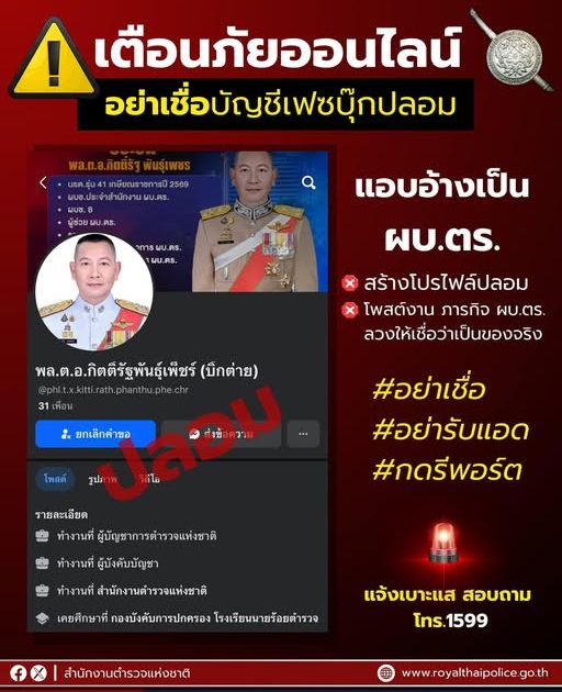 #เตือนภัยออนไลน์ : มิจฯ มักใช้วิธีสร้างโปรไฟล์ปลอมเป็นคนมีชื่อเสียงเพื่อหลอกลวง ขอแอดเป็นเพื่อน พูดคุยตีสนิทชักชวนลงทุนหลอกล่อเอาทรัพย์สิน