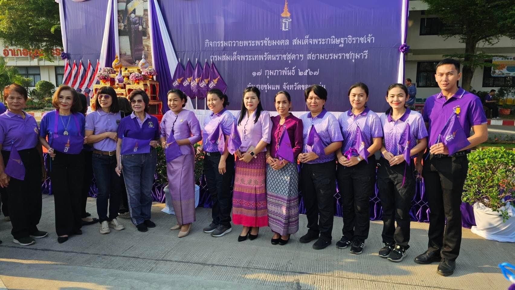 วันที่ 17 ก.พ. 2567 ตั้งแต่เวลา 08.00 น. พ.ต.อ.รักชาติ เรืองเจริญ ผกก.สภ.ชุมแพ พร้อม กต.ตร.สภ.ชุมแพ, ข้าราชการตำรวจ สภ.ชุมแพ ร่วมกับอำเภอชุมแพ หน่วยงานราชการ รัฐวิสาหกิจ เอกชน มูลนิธิ สโมสร ห้างร้าน และประชาชน ร่วมกิจกรรมถวายพระพรชัยมงคลเพื่อแสดงออกถึงความจงรักภักดี และสำนึกในพระมหากรุณาธิคุณ สมเด็จพระกนิษฐาธิราชเจ้า กรมสมเด็จพระเทพรัตนราชสุดาฯ สยามบรมราชกุมารี ณ บริเวณพิธีหน้าที่ว่าการอำเภอชุมแพ โดยมี นางสาว อ้อยใจ คำบุญเรือง นายอำเภอชุมแพ เป็นประธานในพิธี
