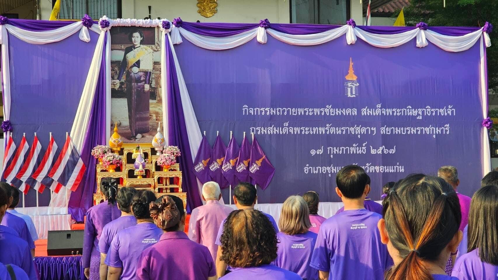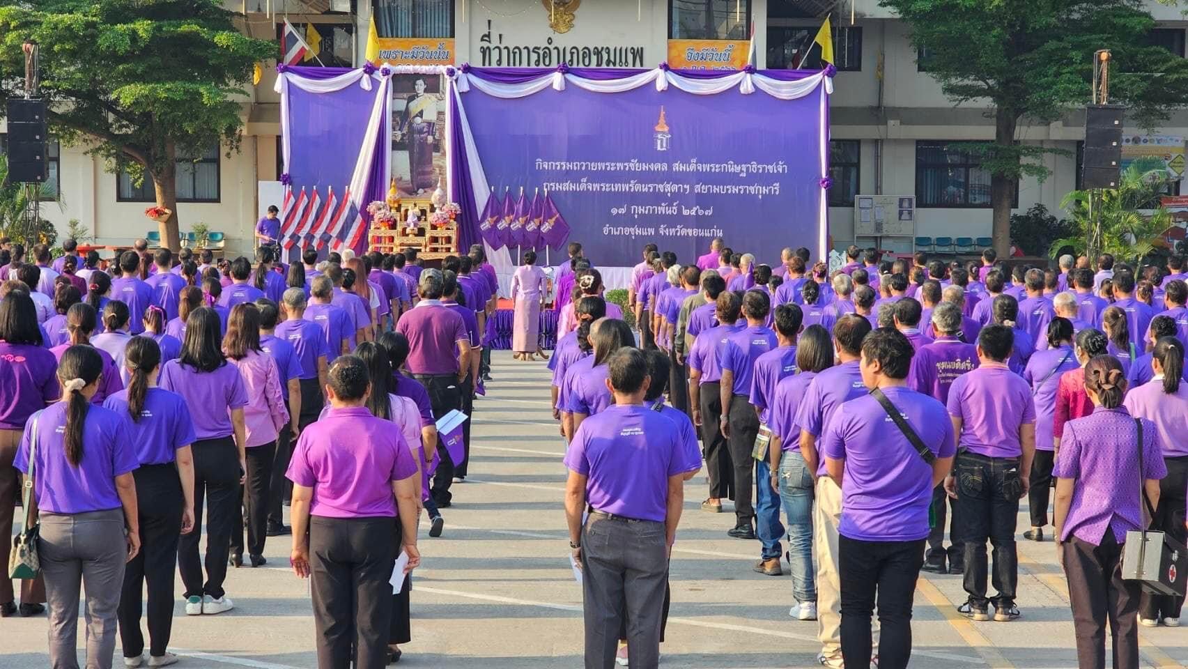 วันที่ 17 ก.พ. 2567 ตั้งแต่เวลา 08.00 น. พ.ต.อ.รักชาติ เรืองเจริญ ผกก.สภ.ชุมแพ พร้อม กต.ตร.สภ.ชุมแพ, ข้าราชการตำรวจ สภ.ชุมแพ ร่วมกับอำเภอชุมแพ หน่วยงานราชการ รัฐวิสาหกิจ เอกชน มูลนิธิ สโมสร ห้างร้าน และประชาชน ร่วมกิจกรรมถวายพระพรชัยมงคลเพื่อแสดงออกถึงความจงรักภักดี และสำนึกในพระมหากรุณาธิคุณ สมเด็จพระกนิษฐาธิราชเจ้า กรมสมเด็จพระเทพรัตนราชสุดาฯ สยามบรมราชกุมารี ณ บริเวณพิธีหน้าที่ว่าการอำเภอชุมแพ โดยมี นางสาว อ้อยใจ คำบุญเรือง นายอำเภอชุมแพ เป็นประธานในพิธี