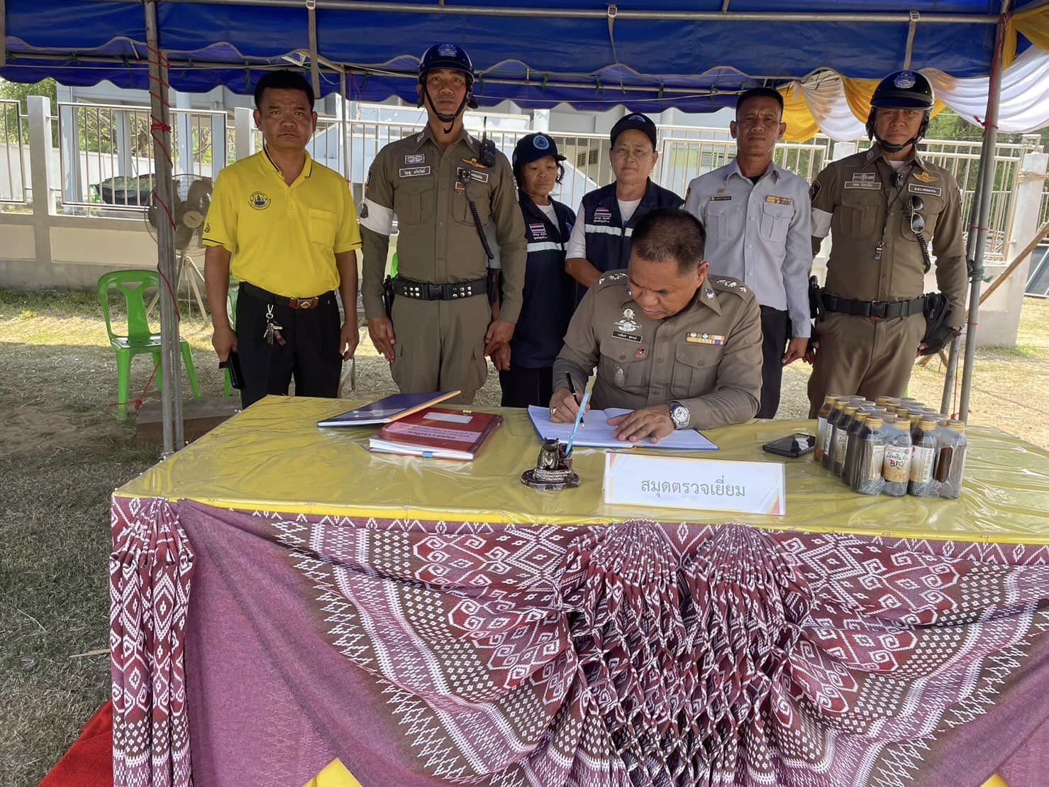วันที่ 12 เมษายน 2567 พ.ต.อ.รักชาติ เรืองเจริญ ผกก.สภ.ชุมแพ, พ.ต.ท.กฤติเดช สุพรรณ์ รอง ผกก.(สอบสวน)สภ.ชุมแพ ตรวจเยี่ยมจุดตรวจบริการประชาชนช่วงเทศกาลสงกรานต์ พบเจ้าหน้าที่อยู่ปฏิบัติหน้าที่ จึงได้มอบเครื่องดื่มให้กับเจ้าหน้าที่ผู้ปฏิบัติหน้าที่ประจำจุด เพื่อเป็นขวัญและกำลังใจ พร้อมทั้งกำชับการปฏิบัติให้เน้นการบริการประชาชน ประชาสัมพันธ์ให้ผู้ขับขี่ให้เมาไม่ขับ ง่วงไม่ขับ ขับรถอย่างมีวินัย รักษากฎวินัยจราจร เพื่อที่จะสามารถเดินทางกลับถึงบ้านได้อย่างปลอดภัย