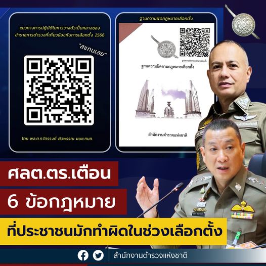 ศลต.ตร.เตือนพี่น้องประชาชน เลือกตั้ง 2566 เข้าสู่โค้งสุดท้ายแล้ว การซื้อเสียง ขายเสียง มีความผิดตามก