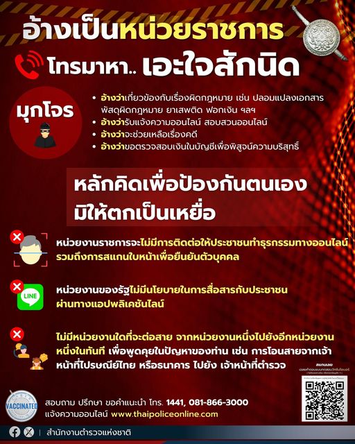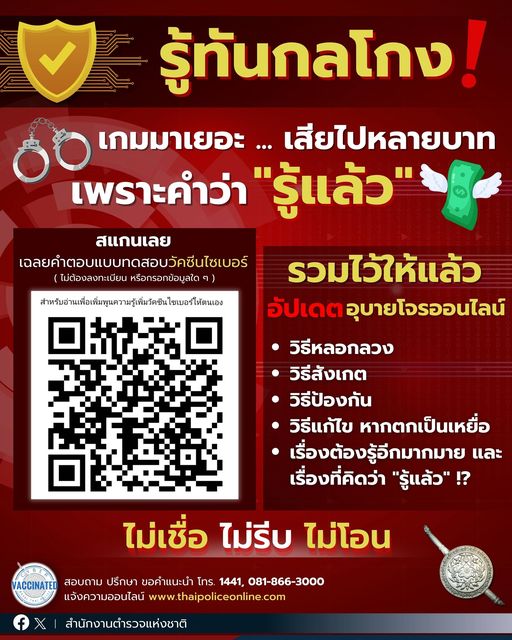 ไม่เชื่อ ไม่รีบ ไม่โอน รู้ทันกลโกง #วัคซีนไซเบอร์ #สำนักงานตำรวจแห่งชาติ #Royalthaipolice