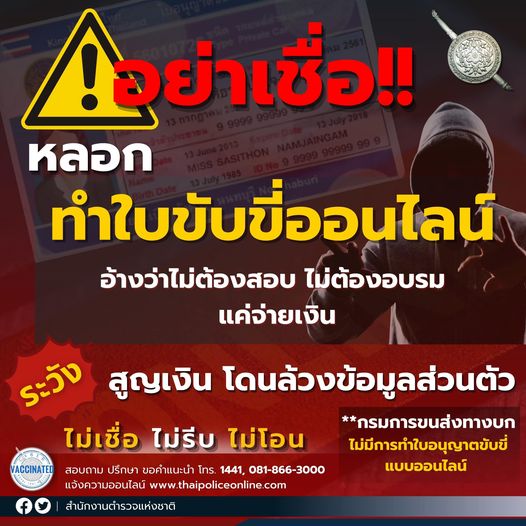 ระบาดอีกแล้ว!!……….อย่าเชื่อ … มิจฉาชีพ หลอก “ทำใบขับขี่ออนไลน์”