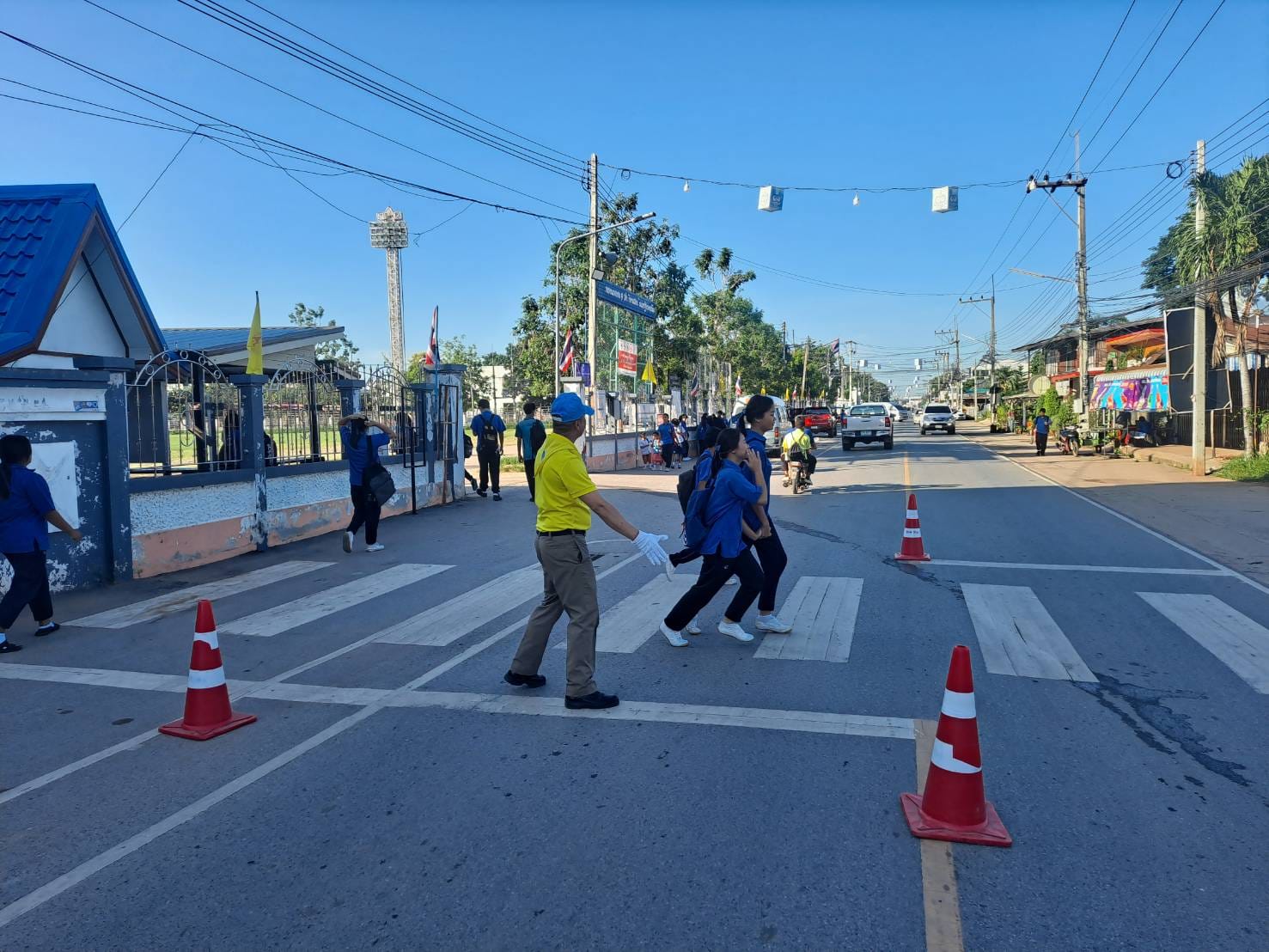 จิตอาสาจราจร สภ.ชุมแพ อำนวยความสะดวกการจราจรบริเวณหน้าโรงเรียนเทศบาล1