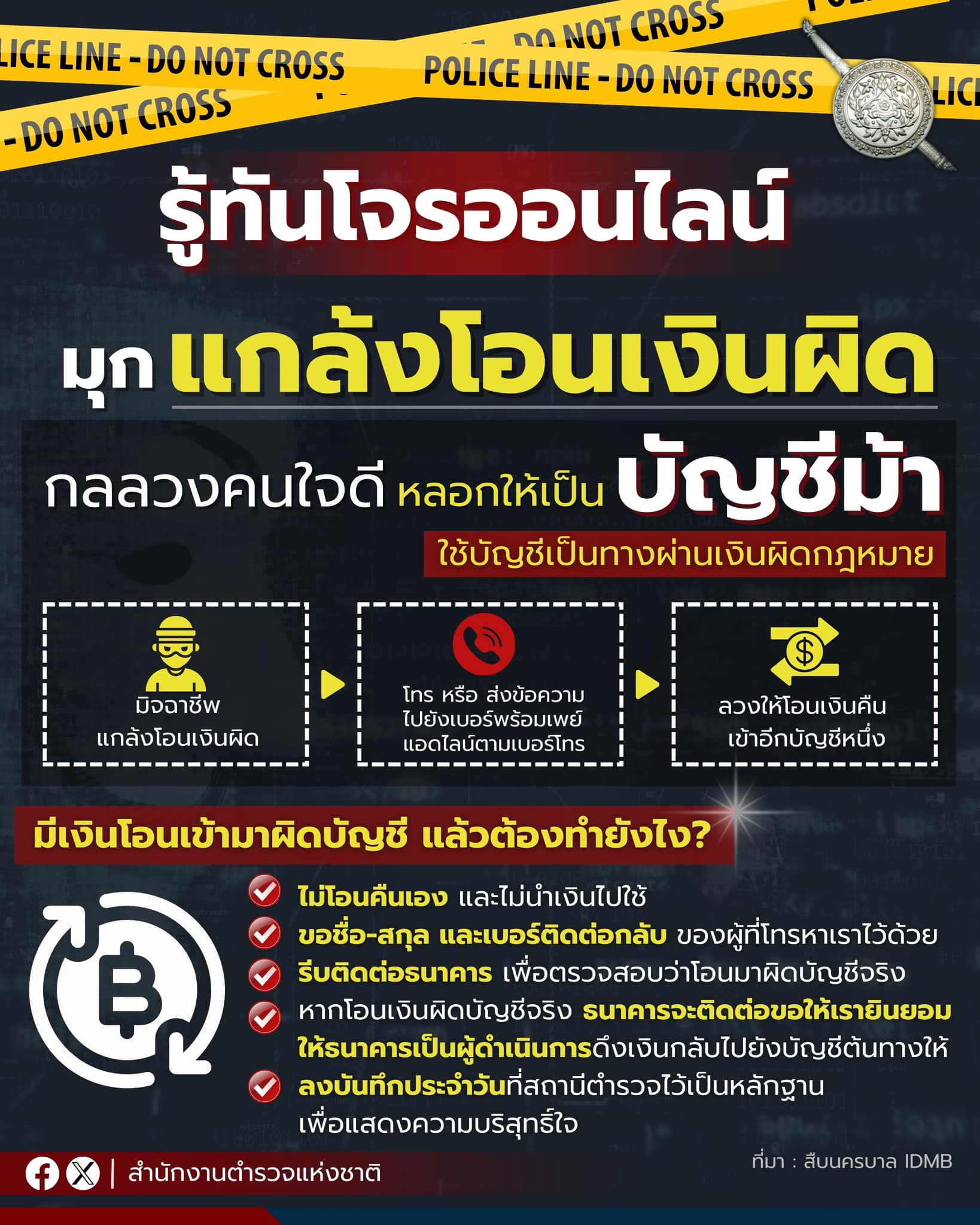 กลลวงคนใจดี หลอกให้เป็น “บัญชีม้า” มิจฉาชีพแกล้งโอนเงินผิด โทร หรือส่งข้อความมาตามเบอร์ที่ตรงกับบัญ