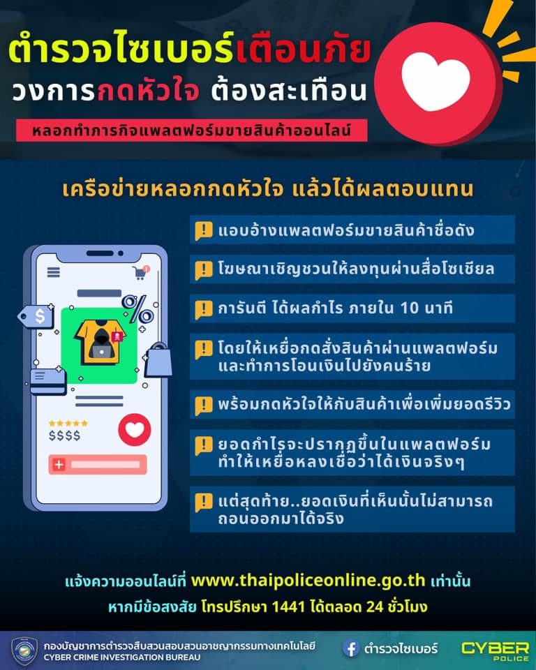 ตำรวจไซเบอร์เตือนภัย มิจฉาชีพหลอกโอนเงินลงทุนทำภารกิจออนไลน์ สังเกตง่ายๆ ดังนี้ แอบอ้างแพลตฟอร์มขายส