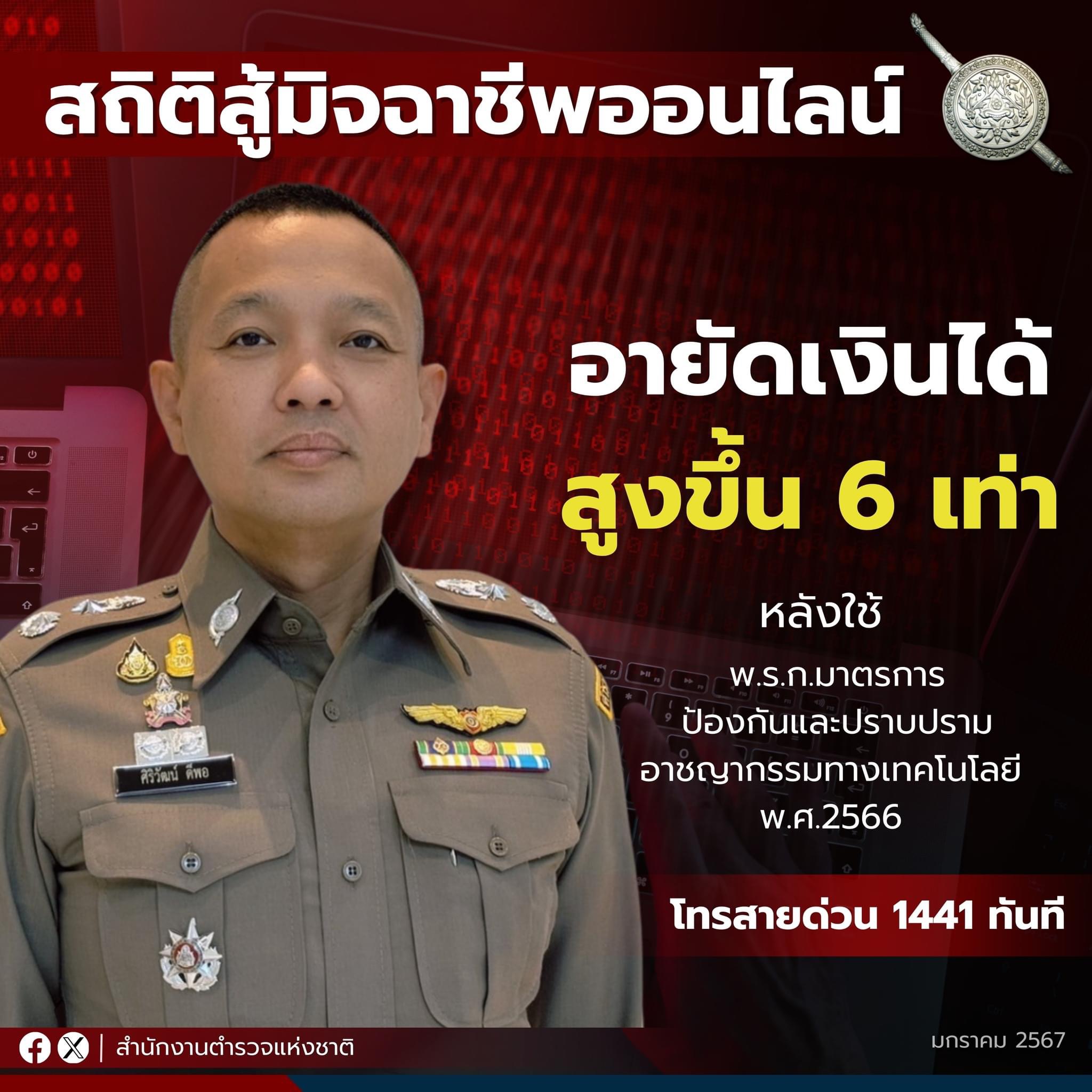 ตร. เผย สถิติอายัดเงินทัน สูงขึ้น 6 เท่า! หลัง พ.ร.ก.มาตรการป้องกันและปราบปรามอาชญากรรมทางเทคโนโลยี พ.ศ.2566 มีผลบังคับใช้