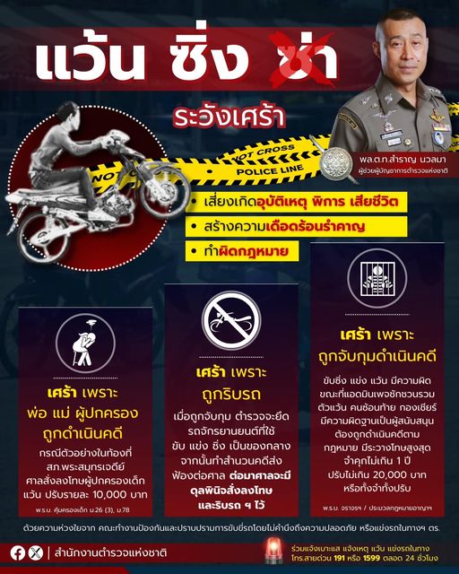 พล.ต.ท.สำราญ ฯ เผย สำนักงานตำรวจแห่งชาติปราบปรามเด็ดขาด เด็กแว้น รถซิ่ง ป่วนเมือง สร้างความเดือดร้อน