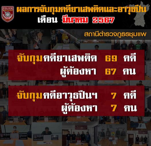 #ผลการจับกุมคดียาเสพติดและอาวุธปืน ของ สถานีตำรวจภูธรชุมแพ ประจำเดือน มีนาคม 2567