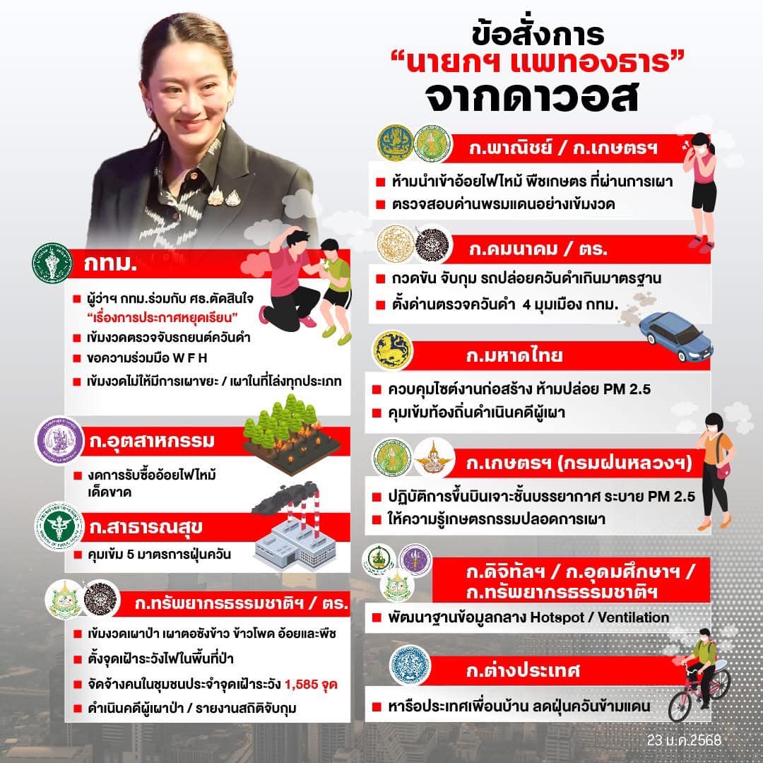 นายกฯ สั่งจาก “ดาวอส” ระดมสรรพกำลัง แก้ “ฝุ่น” เร่งด่วน กทม. : ใช้ 9 มาตรการ ตรวจจับควันดำ WFH ควบคุ