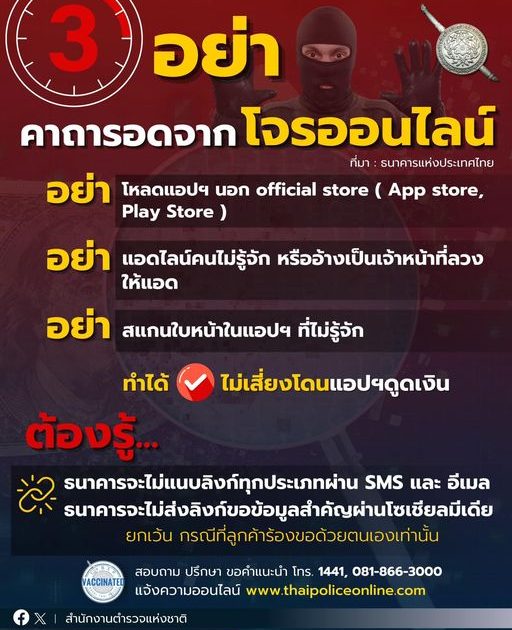 รวมทั้งไม่ส่งลิงก์ขอข้อมูลสำคัญผ่านช่องทางโซเชียลมีเดีย ( ยกเว้นกรณีลูกค้าร้องขอด้วยตัวเองเท่านั้น )