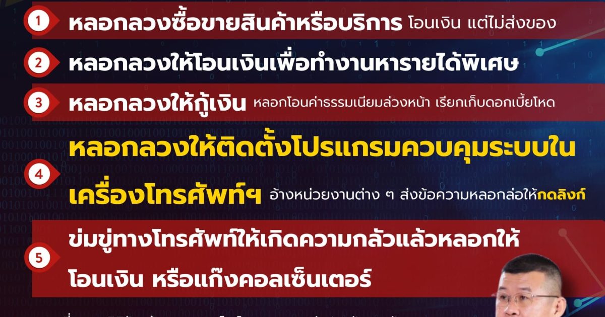 และ 5) คดีข่มขู่ทางโทรศัพท์ให้เกิดความกลัวแล้วหลอกให้โอนเงิน (Call Center)