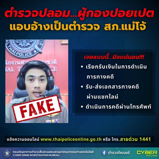 ปัจจุบันมิจฉาชีพใช้ช่องทางออนไลน์หลอกลวงมากขึ้น เช่น การปลอมแปลงเป็นตำรวจ ติดต่อผ่านแอปพลิเคชันไลน์
