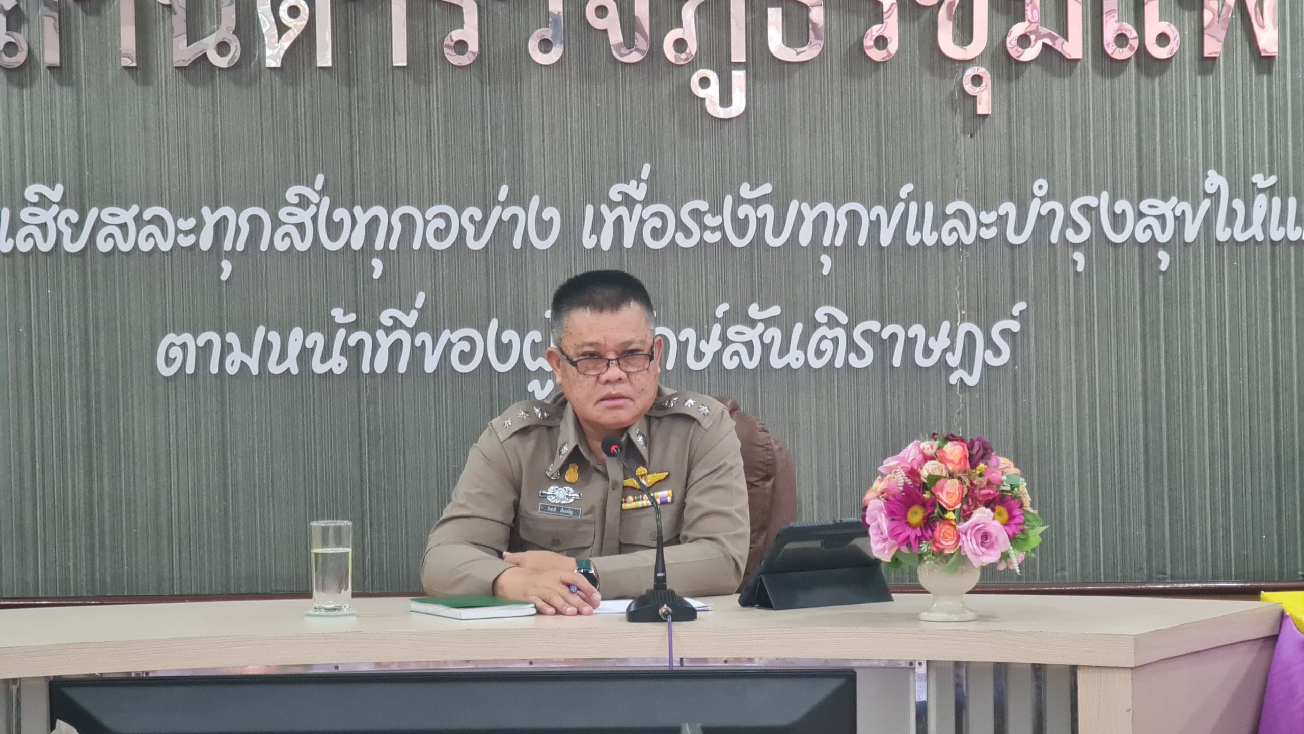 พ.ต.อ.รักชาติ เรืองเจริญ ผกก.สภ.ชุมแพ ประชุมชี้แจงข้อราชการ มอบนโยบายการปฏิบัติหน้าที่ประจำเดือน