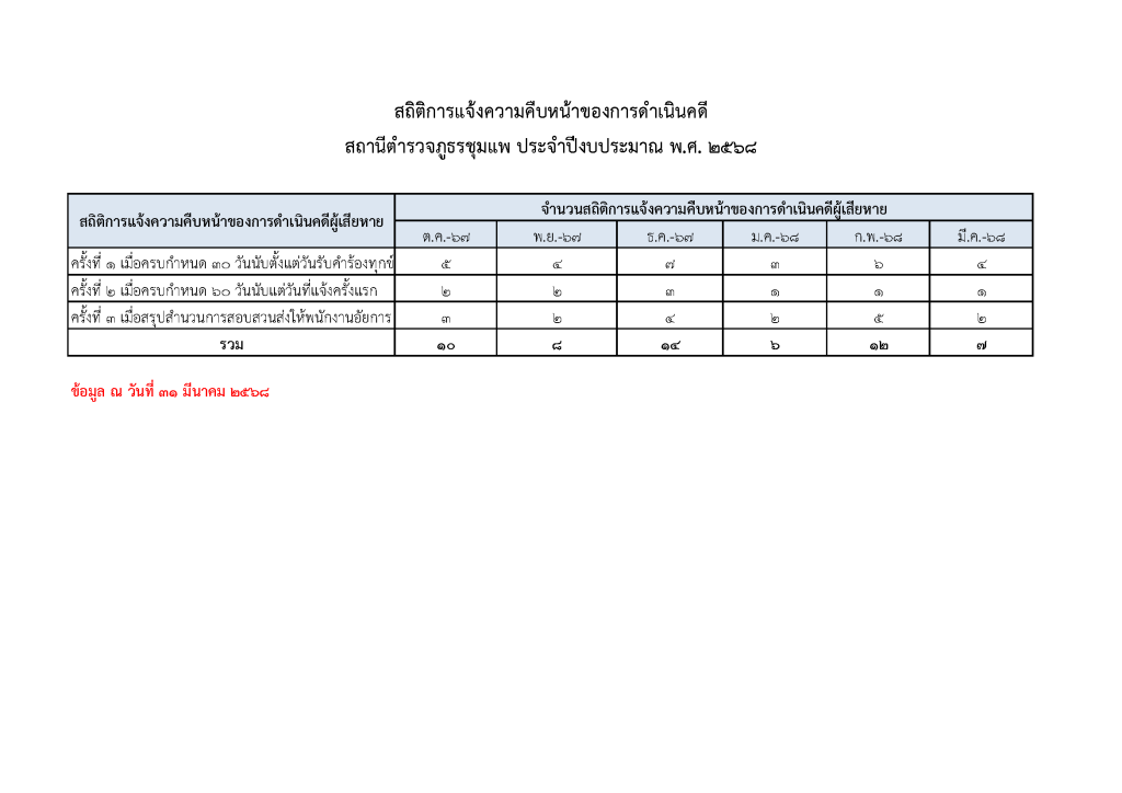 O11 สถิติการแจ้งความคืบหน้าของการดำเนินคดี