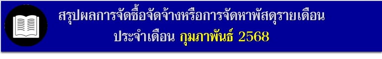 รายงานผลการจัดซื้อจัดจ้างประจำเดือน กุมภาพันธ์ 69