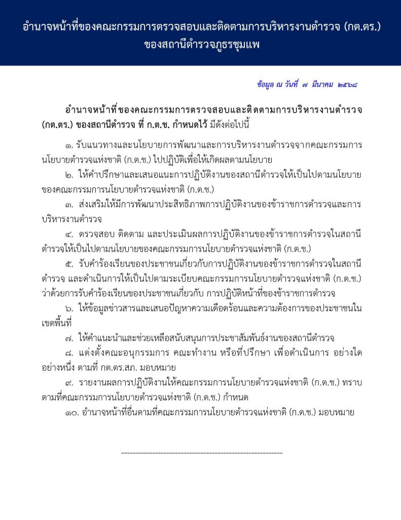 • O4 ข้อมูลคณะกรรมการตรวจสอบและติดตามการบริหารงานตำรวจ (กต.ตร.) ของสถานีตำรวจ